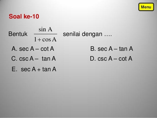 Bentuk Sederhana Dari Cosecx Cotanx 1 Cosx Brainly Co Id