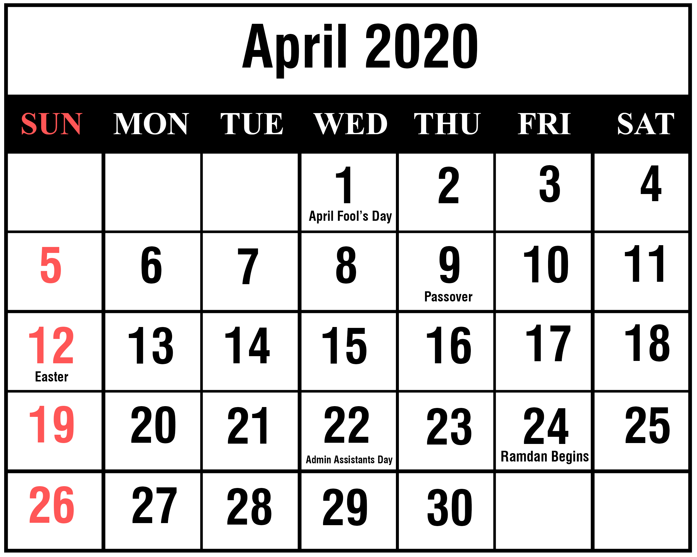 November 2020 Calendar With Holidays Word Pdf Free Printable 2020 Calendar With Holidays