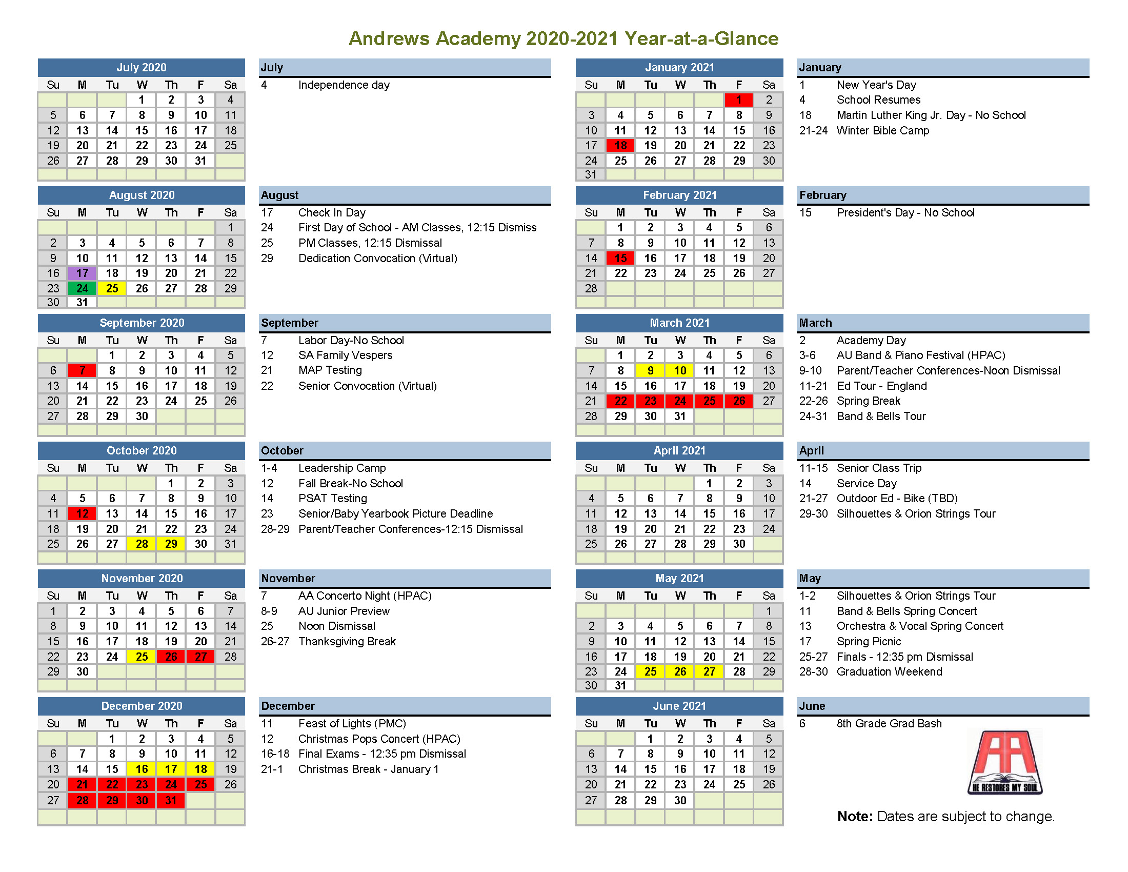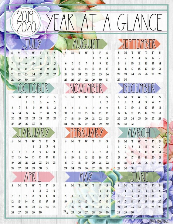 2020 2021 Academic Calendar Printable Year At A Glance W Bonus Monthly Planner