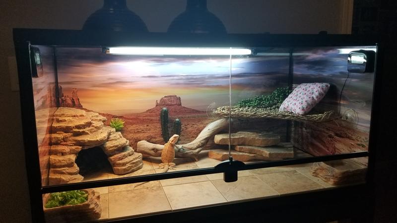 New 40 Gallon Tank Done Basking Site Is 100 105 Degrees Cool Side Is 80 Have One 18 15 Watt Uvb Light So Far I M Really Liking The Tile Flooring Any Other Suggestions Beardeddragons