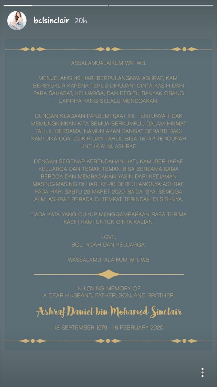 Tak Bisa Gelar Tahlilan 40 Hari Kepergian Mendiang Ashraf Sincalir Karena Wabah Virus Corona Bcl Dan Keluarga Kompak Terhubung Lewat Sambungan Video Lantunkan Dzikir Dan Surat Yasin Semua Halaman Pop Grid Id