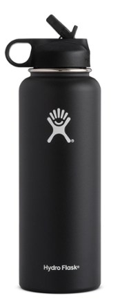 Hydro Flask Vacuum Insulated Stainless Steel Water Bottle Wide Mouth With Straw Lid Black 40 Ounce Best Camp Kitchen