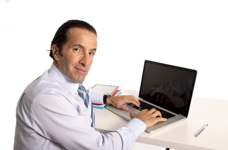 40 To 50 Years Old Senior Businessman Working On Computer Laptop Sitting At Office Desk Looking Confident Relaxed And Successful Isolated On White Background Royalty Free Images Photos And Pictures