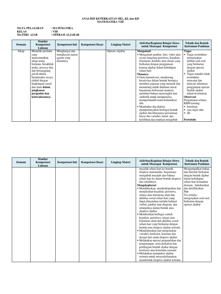 Ki Kd Smp Mts Kurikulum 2013 Kelas 7 8 9 Revisi Keterkaitan Skl Ki Kd Bhs Indonesia Viii 2 Docx Pdf Document