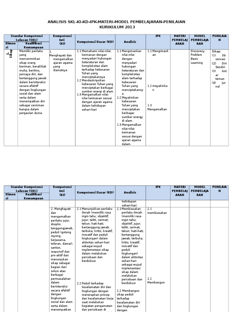 Bahan Pelatihan Implementasi Kurikulum 2013 A 1 3 Skl Ki Kd 1 4 Strategi Memiliki Keterampilan Menganalisis Keterkaitan Antara Standar Kompetensi Analisis Skl Ki Pdf Document