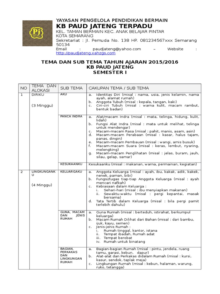 Rpph Paud Tema Diriku Subtema Tubuhku Guru Paud