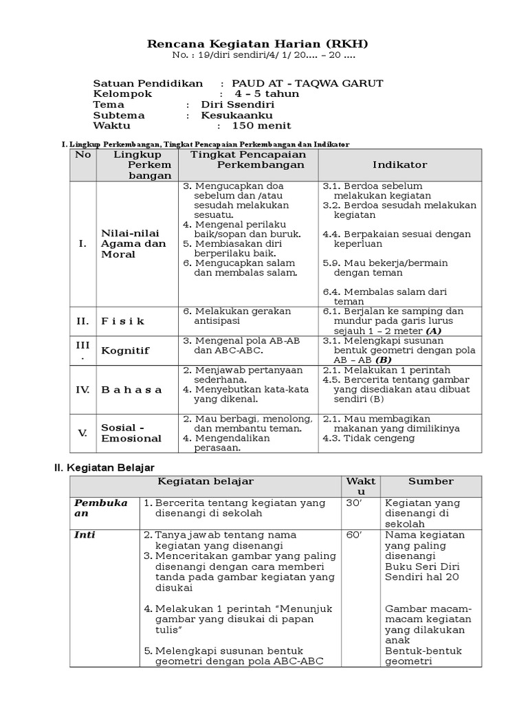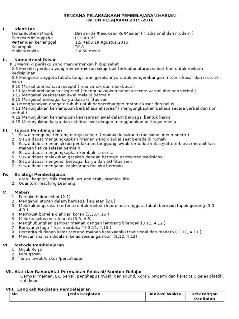 Rencana Pelaksanaan Pembelajaran Harian Rpph Kelompok Bermain Aisyiyah Gondangmanis Tahun Pelajaran 2016 Pdf Download Gratis