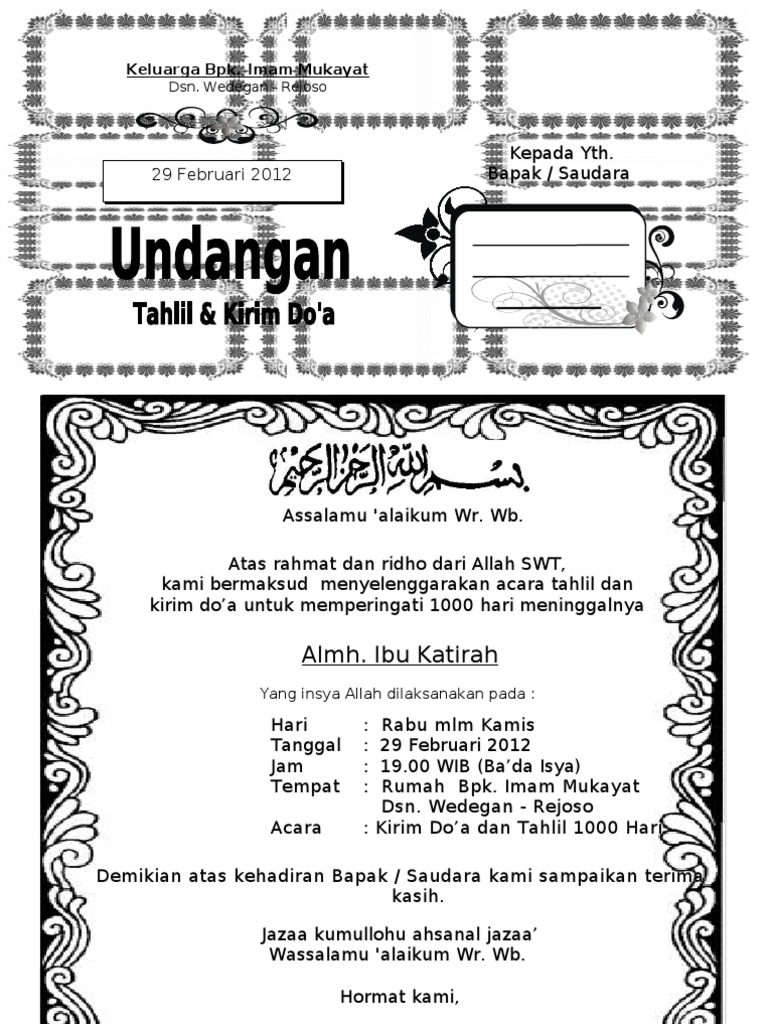 Contoh Undangan Tahlilan 40 Hari Meninggalnya Di 2020 Undangan Cv Kreatif Buku
