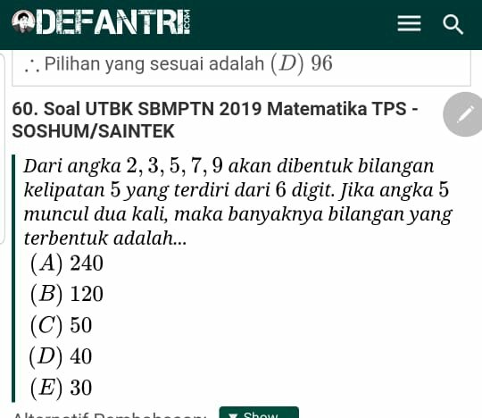 Defantri utbk saintek. C alon guru belajar 100 soal dan pembahasan utbk matematika kelompok saintek tahun 2019. C alon guru belajar matematika dari 100 soal dan pembahasan tps penalaran dan kemampuan kuantitatif utbk sbmptn tahun 2019 yang merupakan kelanjutan dari catatan 100 soal dan pembahasan utbk sbmptn tahun 2019 tka saintek matematika ipa. Saat ini ada 130 soal utbk ujian tulis berbasis komputer yang dirangkum dari berbagai grup diskusi anak anak sma kelas xii dua belas atau alumni yang ikut utbk 2019.