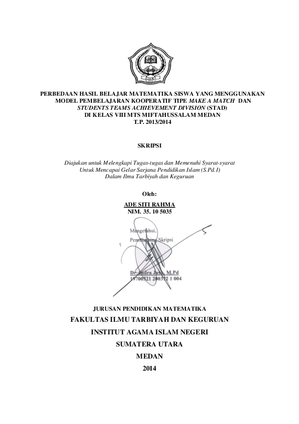 Pdf Perbedaan Hasil Belajar Matematika Siswa Yang Menggunakan Model Pembelajaran Kooperatif Tipe Make A Match Dan Students Teams Achievement Division Stad Di Kelas Viii Mts Miftahussalam Medan T P 2013 2014 Adesitirahma Panjaitan
