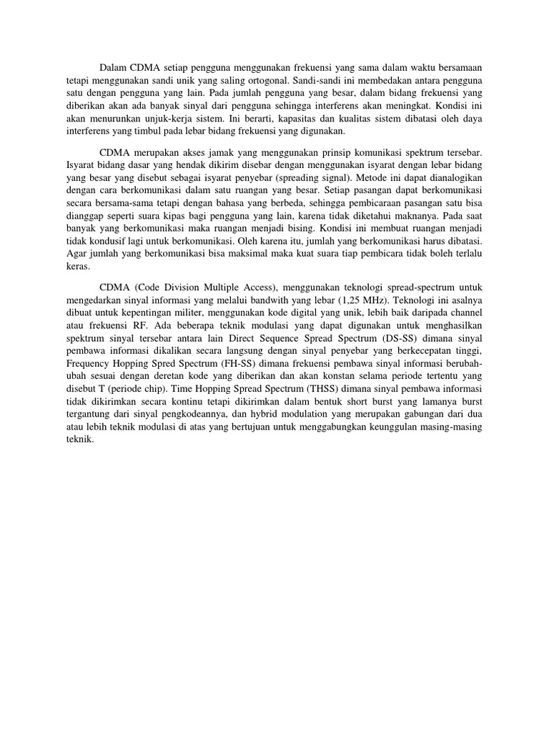 Dalam Cdma Setiap Pengguna Menggunakan Frekuensi Yang Sama Dalam Waktu Bersamaan Tetapi Menggunakan Sandi Unik Yang Saling Ortogonal
