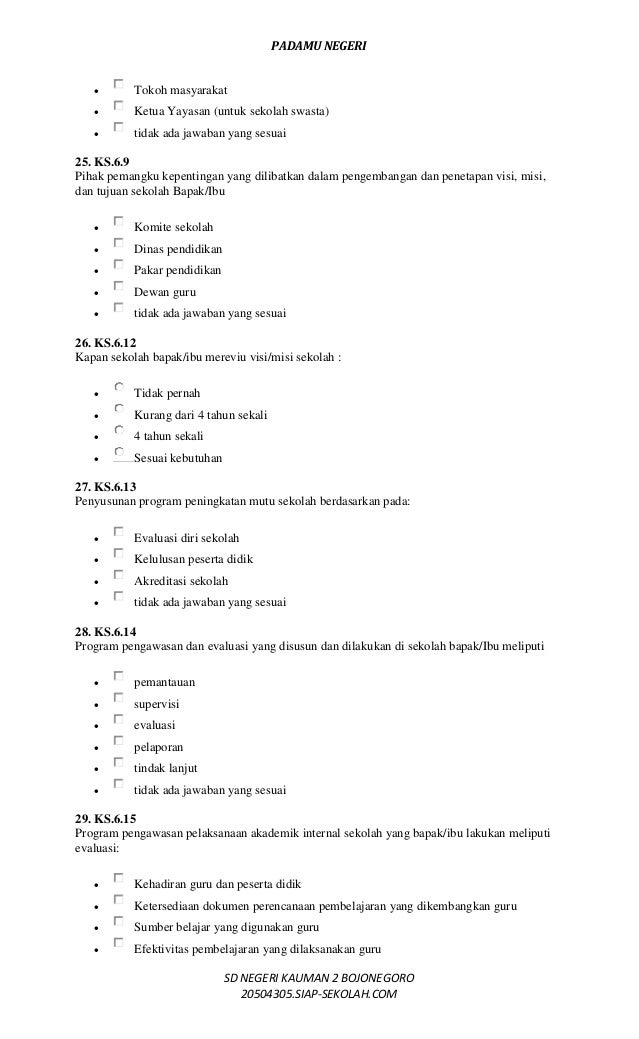 Pdf Instrumen Evaluasi Diri Sekolah Eds Standar Nasional Pendidikan Responden Siswa Sd Pusat Penjaminan Mutu Pendidikan Badan Pengembangan Sumber Daya Manusia Pendidikan Diah Rachmawati Academia Edu
