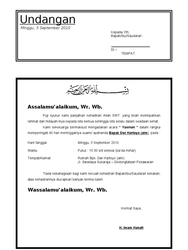 Doc Contoh Undangan Tahlilan 40 Hari Meninggalnya Haekal Iqbal Academia Edu