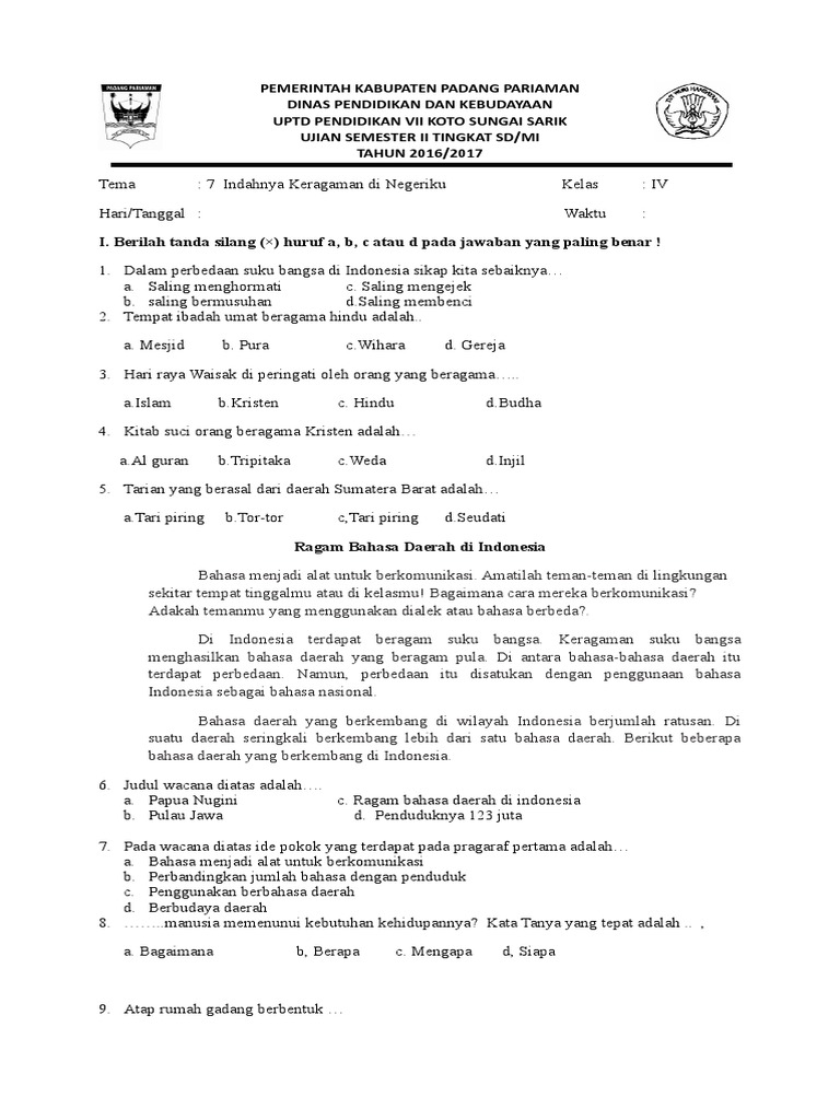 Soal Latihan Ulangan Kenaikan Kelas Penilaian Akhir Tahun Ips Kelas 4 Sd Mi Pendidikan Kewarganegaraan Pendidikan Kewarganegaraan