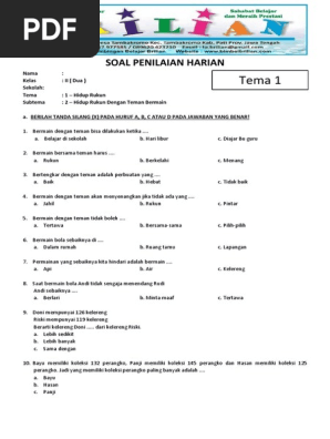 Soal K13 Kelas 2 Sd Tema 1 Subtema 2 Hidup Rukun Dengan Teman Bermain Dan Kunci Jawaban Pdf