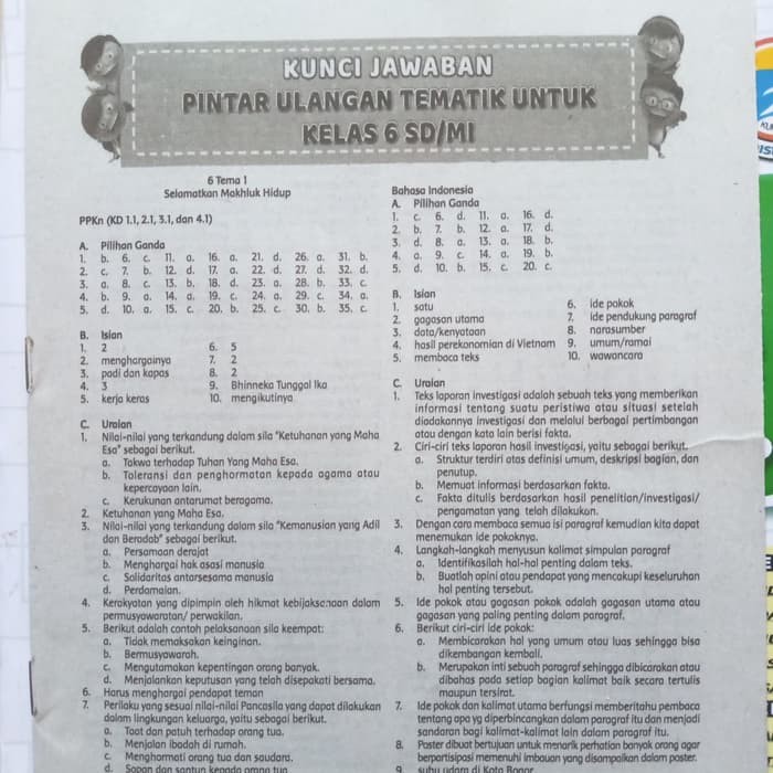Kunci Jawaban Buku Tematik Kelas 6 Tema 1 Selamatkan Makhluk Hidup Ruang Edukasi