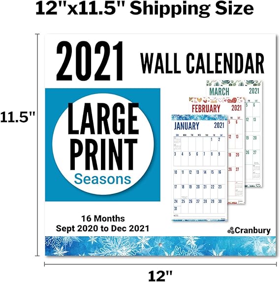 Amazon Com Cranbury Large Print 2021 Wall Calendar Seasons 12x23 Use To December 2021 Stunning Big Grid Wall Calendar For Seniors Vivid Colors Family Or Office Hanging Calendar 2020 2021 Office Products