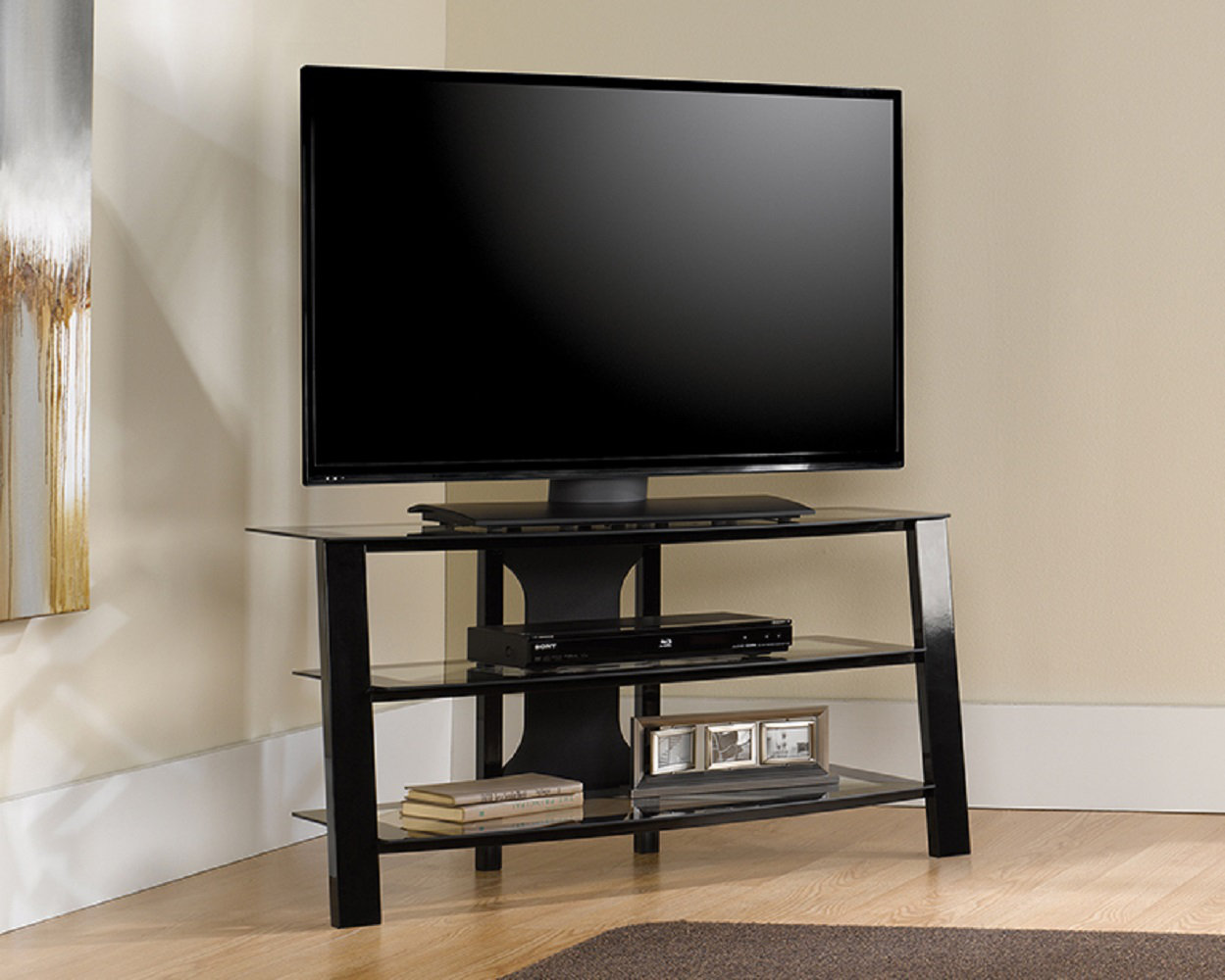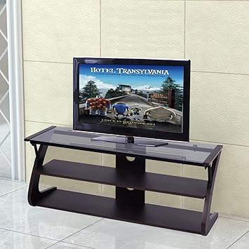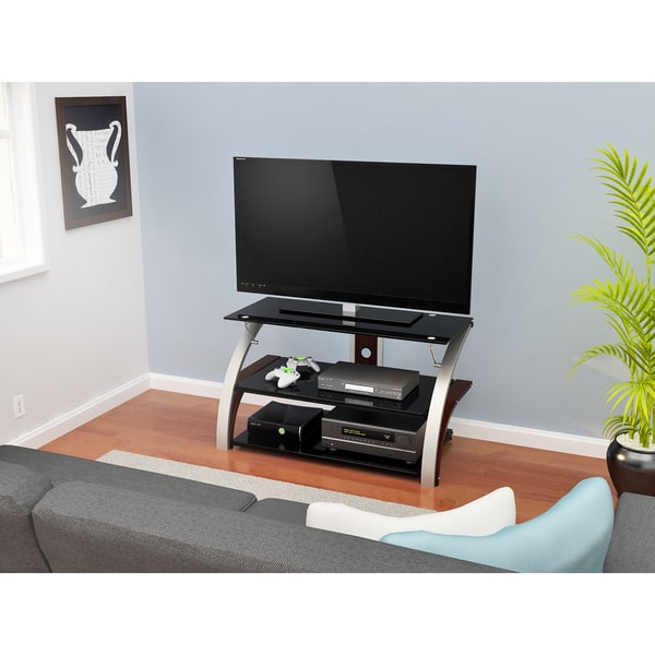 Contemporary 40 Inch Black Metal Tv Stand With Clear Glass Shelves Fastfurnishings Com