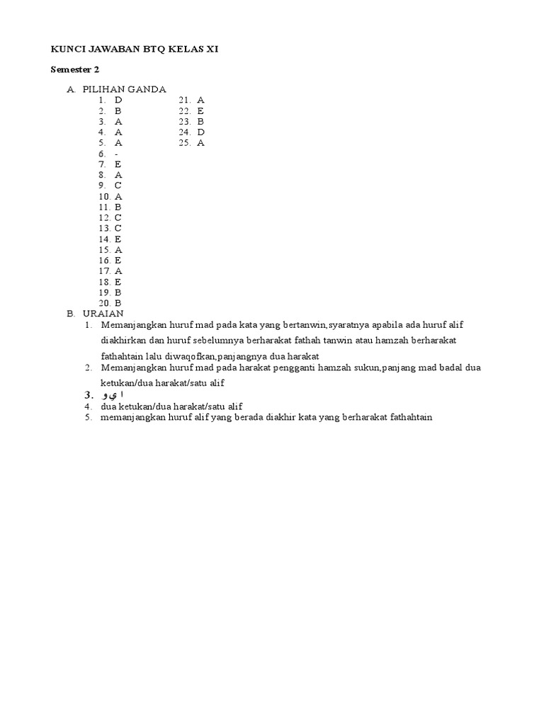 Update 10 Soal Uts Btq Kelas 5 Semester 1 Dan Kunci Jawaban Paling Baru