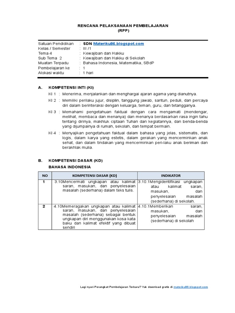Download Rpp Matematika Kurikulum 2013 Kelas 4 Sd Mi Semester 1 Revisi 2018 Tips Belajar Matematika