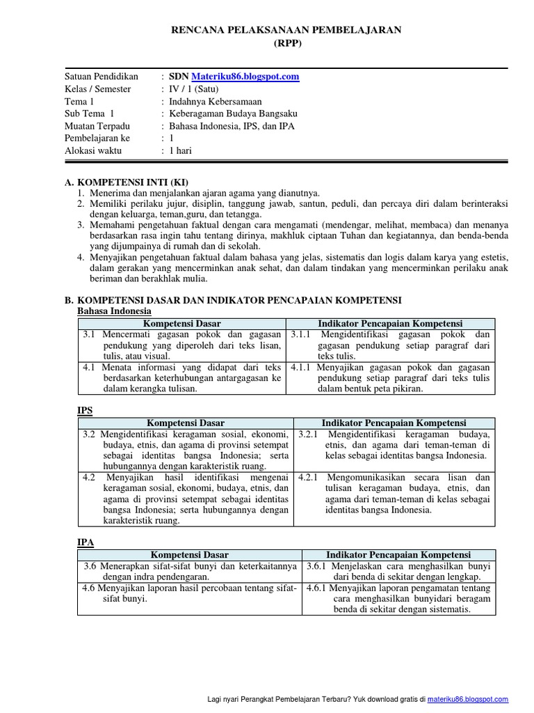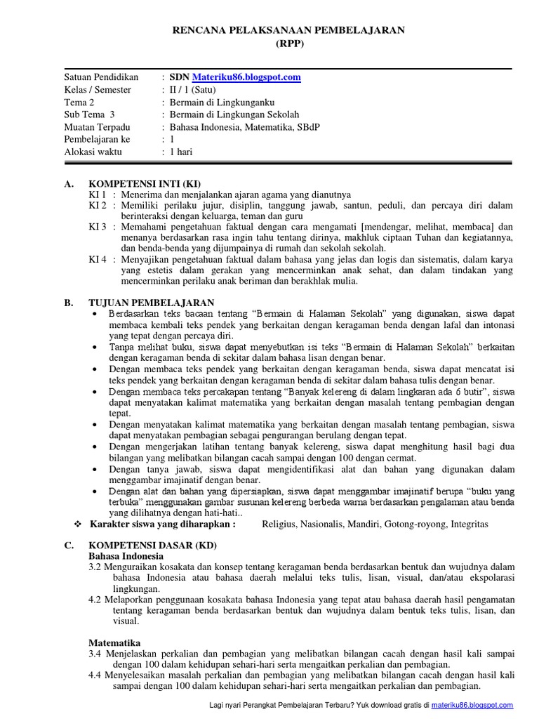 Materiku86 Blogspot Com Rpp Sd Kelas 3 Tema 3 Sub 2 Doc Rpp Kelas Iii Semester 1 Tema 3 Benda Di Sekitarku Rencana Pelaksanaan Pembelajaran Rpp Course Hero