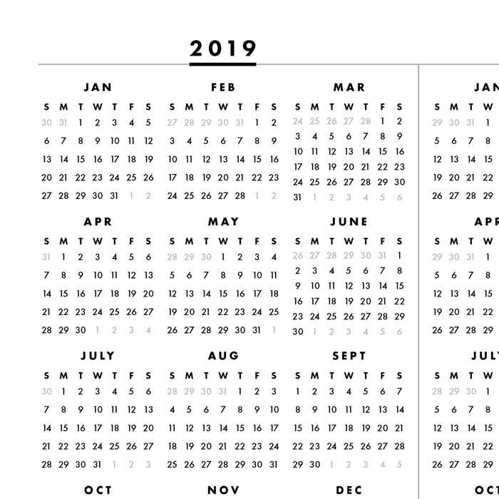 2020 Calendar Resolution Year At A Glance Calendar 2019 Free Printable Free Transparent Png Download Pngkey