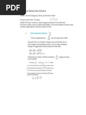 Pecahan a rasional dan b merupakan bentuk akar bagian penyebutnya dapat dirasionalkan dengan cara mengalikan pecahan tersebut dengan sehingga pecahan tersebut menjadi seperti berikut. Jika pembilang lebih besar daripada penyebut seperti hasil penjumlahan soal 2 ini berarti kita mendapatkan 1 bulangan bulat setelah menyederhanakan pecahan. X 2.