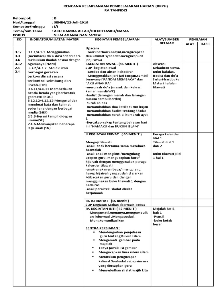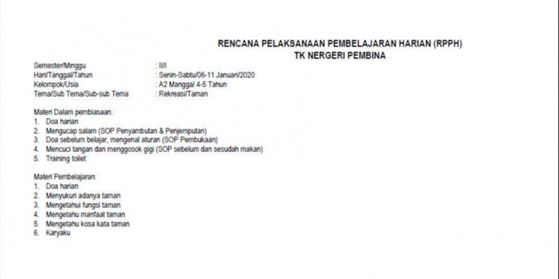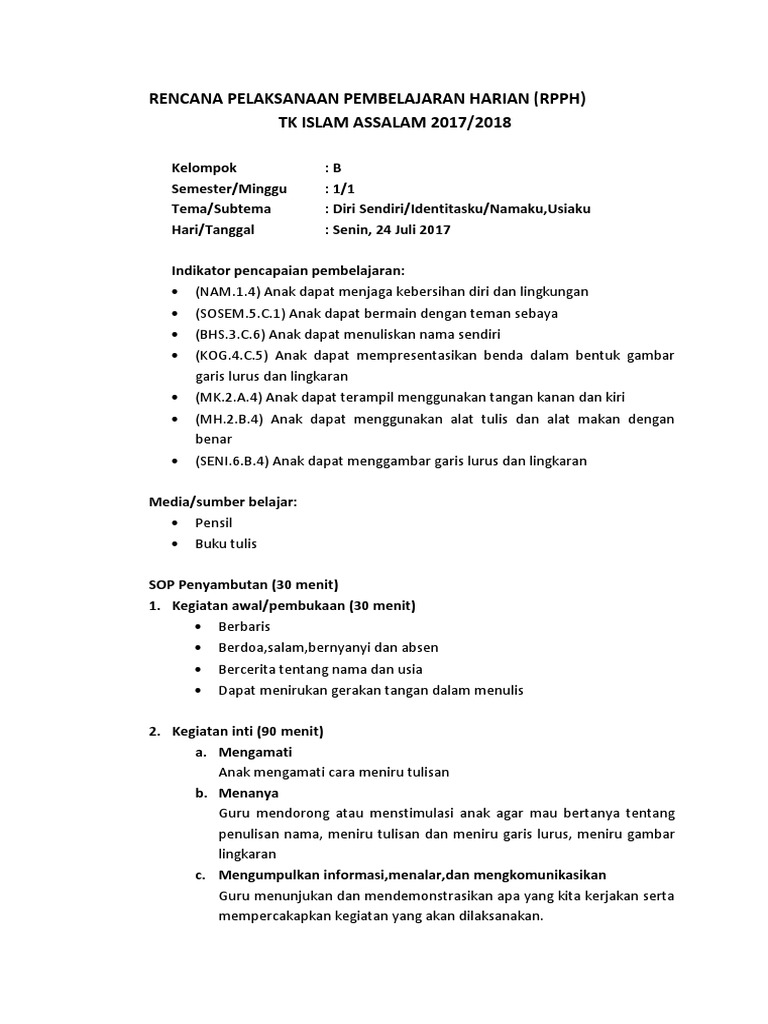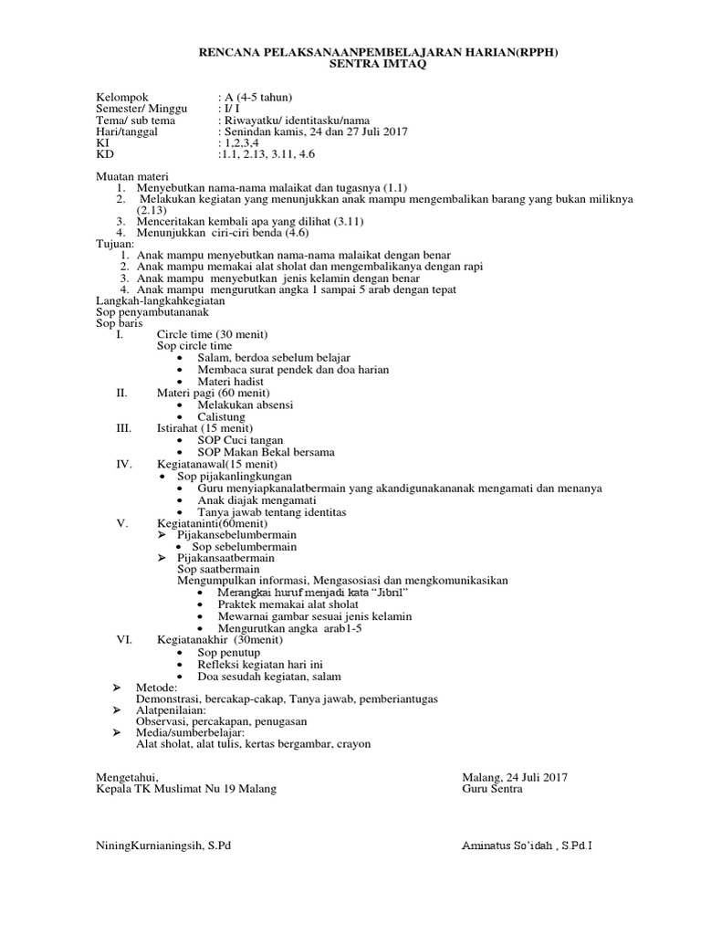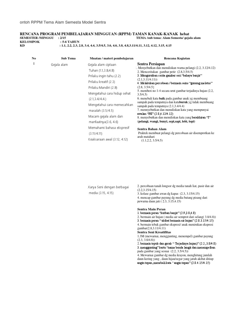 Contoh Rpph Paud Sentra Seni Tema Diri Sendiri Kurikulum 2013 Paud Jateng