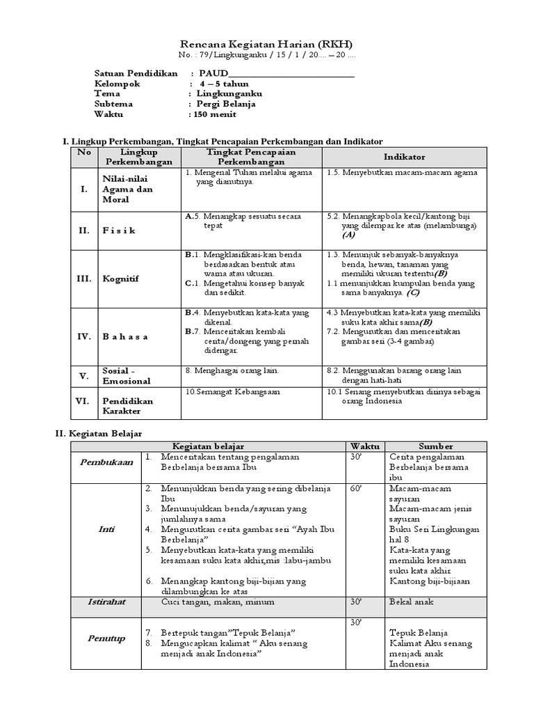 Contoh Rkh X2f Rpph Paud Tema Diri Sendiri Tubuhku Kurikulum 2013 Terbaru Lengkap Dengan Rencana Kegiatan Mingguan Belajar Kurikulum Pendiri