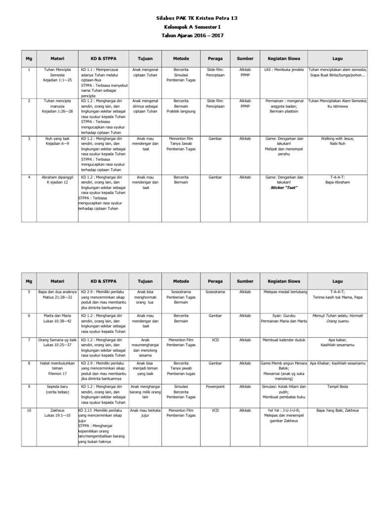 Contoh Program Tahunan Paud Kurikulum 2013 Tk A Usia 4 5 Cute766