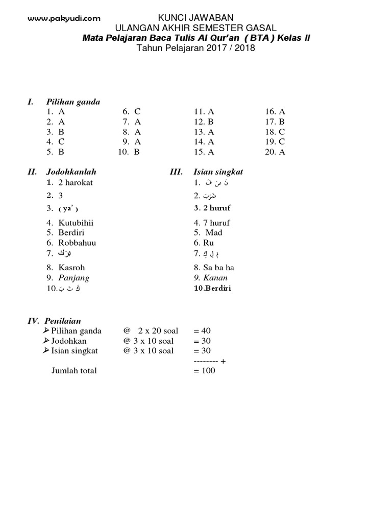 Soal Agama Kelas 2 Sd Mi Semester 1 2 2020 Pg Dan Essay