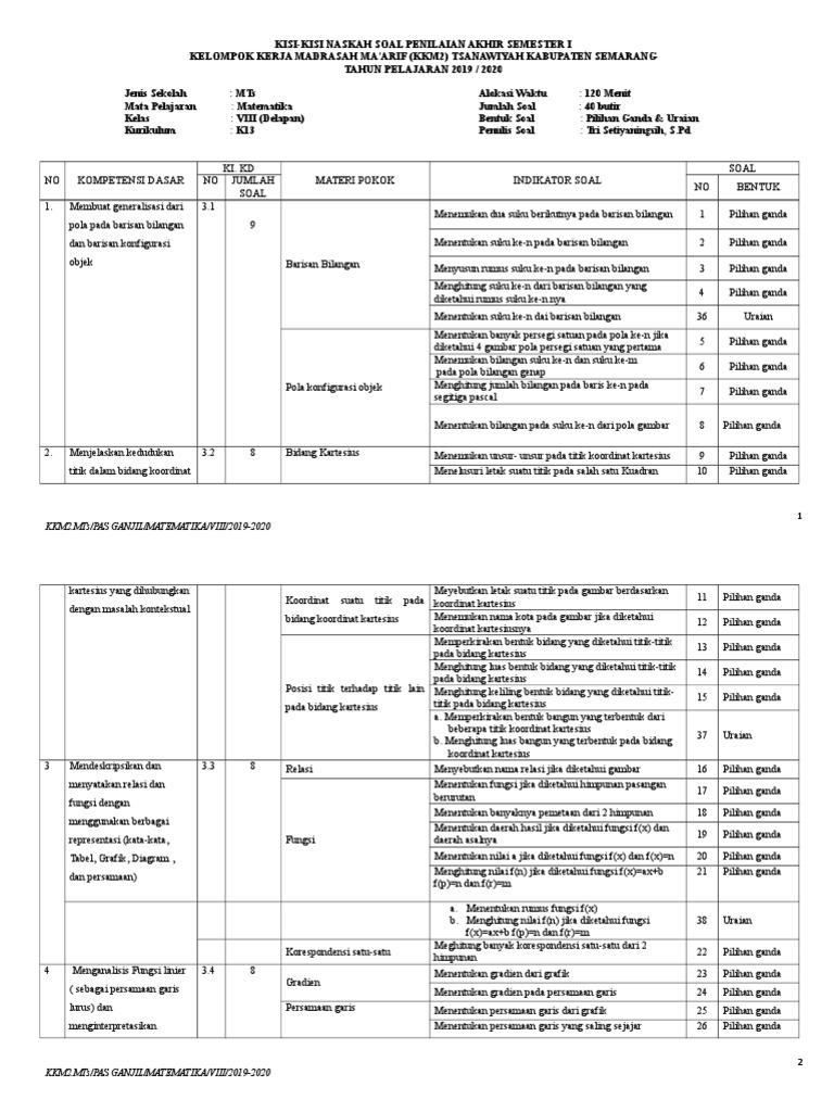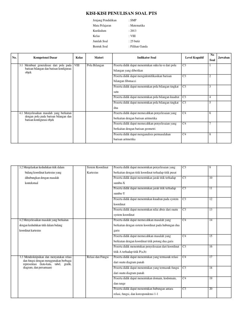 Soal Pts Uts Matematika Smp Mts Kelas 8 Semester 1 Kurikulum 2013 Kunci Jawaban Dan Pembahasan Kumpulan Artikel Menarik Seputar Dunia