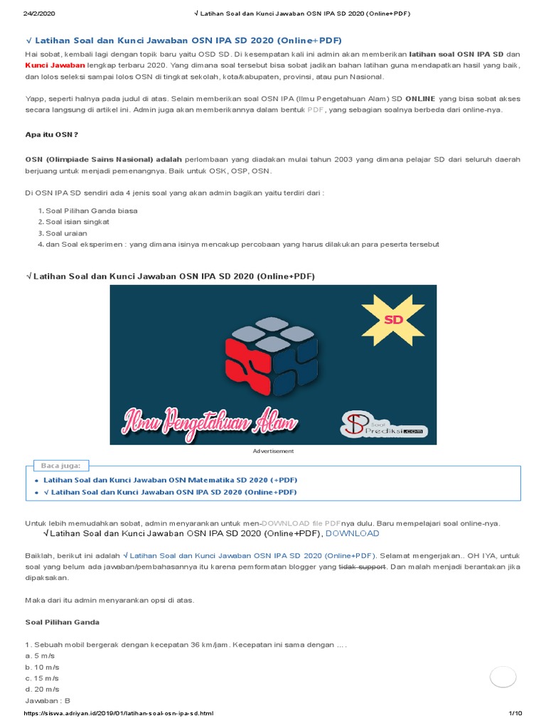 Soal Latihan Olimpiade Ipa Sd 2018 Guru Ilmu Sosial